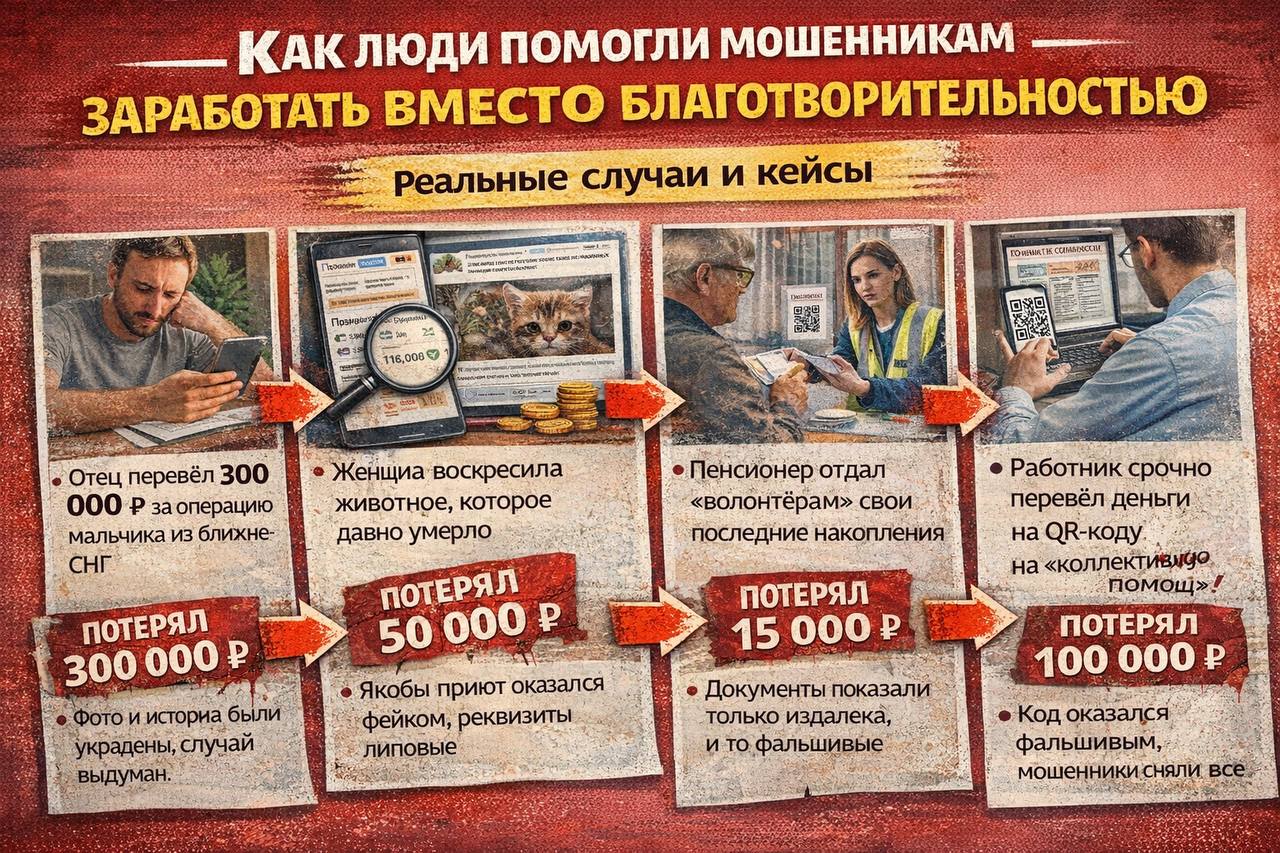 Фальшивая благотворительность держится не на глупости людей. Она держится на нормальных человеческих чувствах. На желании помочь и не пройти мимо. И именно поэтому мошенники так нагло торопят, давят и шантажируют жалостью. Они знают, куда бить. В 2026 году помогать вслепую значит играть на стороне аферистов. Как бы неприятно это ни звучало. Каждый перевод без проверки это поддержка индустрии, которая паразитирует на детях, больных, животных и чужой боли.