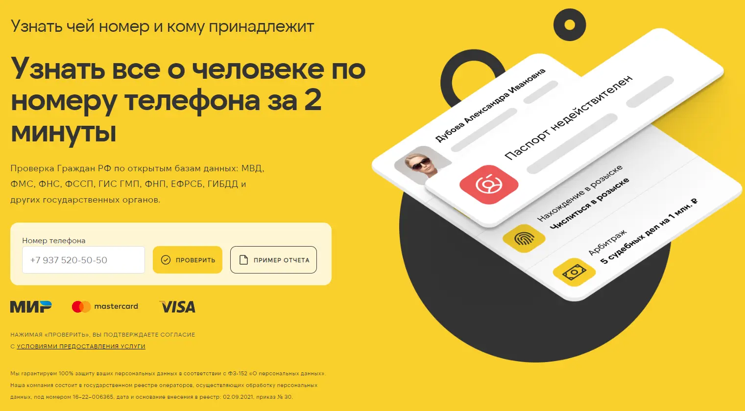Важная часть: проверка номера и обработка данных должны соответствовать закону РФ о персональных данных.