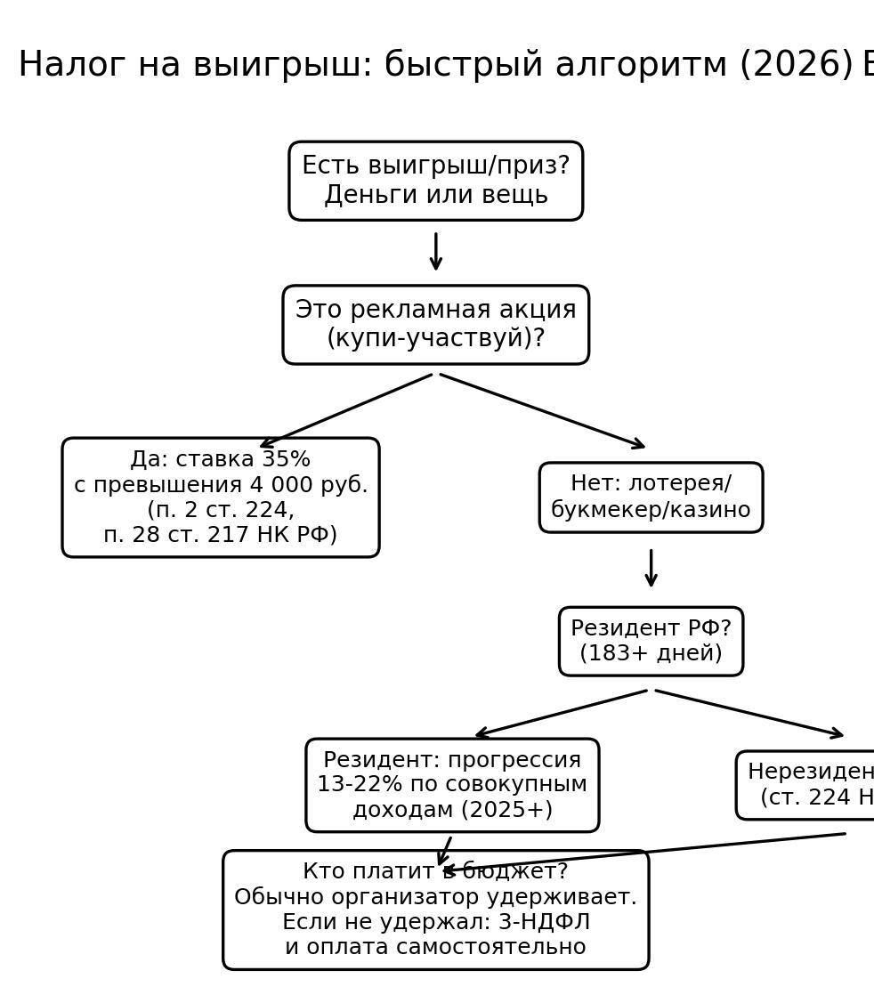 В 2026 году тема налога на выигрыш остается одной из самых мутных для обычных людей. Этим активно пользуются мошенники. Ниже разберу все по-человечески: что говорит закон, сколько платить, кто удерживает налог, и где “выигрыш” существует только как наживка.