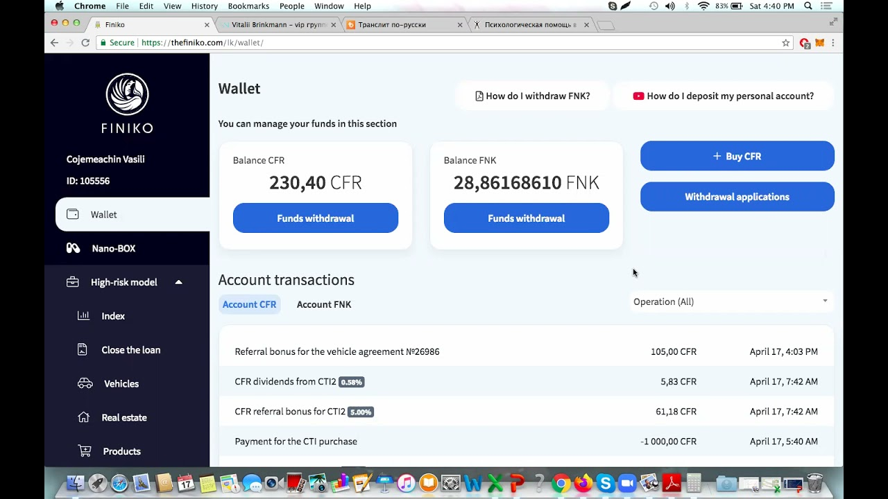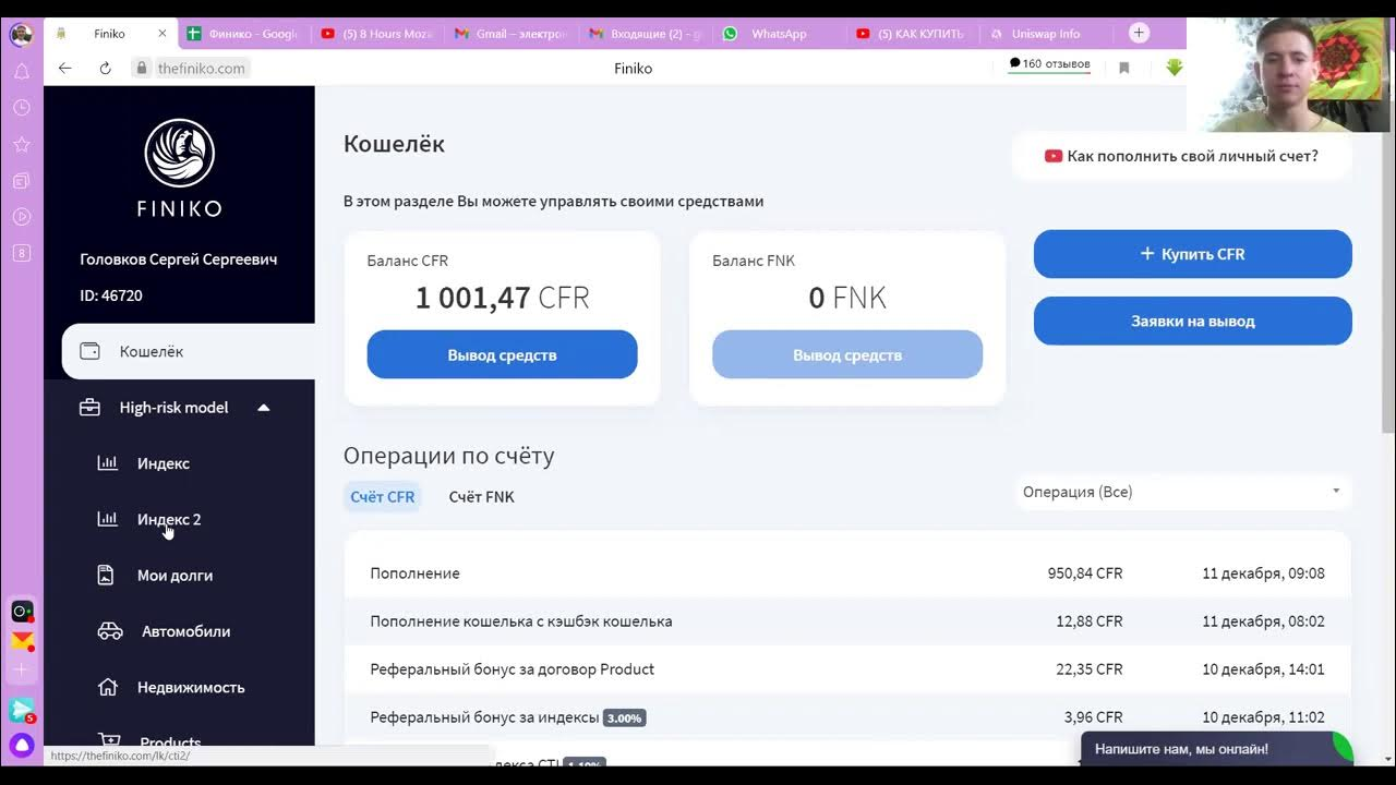 Проще говоря: цену “денег” назначали те же люди, которые решали, кому их можно забрать. С точки зрения безопасности личный кабинет Finiko — это учебник по социальному взлому. Пользователь видел дашборд, баланс, графики роста, историю операций, кнопки “ввод” и “вывод”. Он не видел лицензий, отчетности, контрагентов, подтвержденных сделок. Интерфейс заменял договор. Цифры на экране заменяли реальность. Человек вносил реальные деньги. Часто в криптовалюте. Иногда заемные. Дальше средства конвертировались во внутренние единицы, отображались в CFR, и начинался “рост”. В этот момент деньги переставали быть деньгами. Они становились частью замкнутой системы.