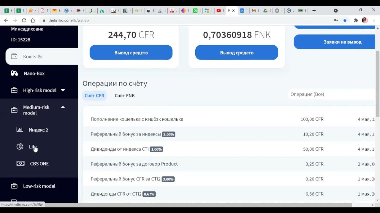 Источник изображения: youtube.com/Пример кабинета Finiko/Вывод средств/CBS one/кешбек сервис